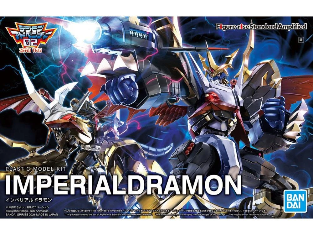 From the second season of Digimon Adventure, Imperialdramon joins the Figure-rise Standard Amplified lineup! Created in cooperation with the original designer Kenji Watanabe, the “Fighter Mode” and “Dragon Mode” can each bye reproduced through part swapping and also number of contracting and expanding sections of the body. The Digimon Figure-rise Imperialdramon (Amplified) model kit features sharp detail and color separation as used on other Bandai Hobby model kits. Positron Cannon included!